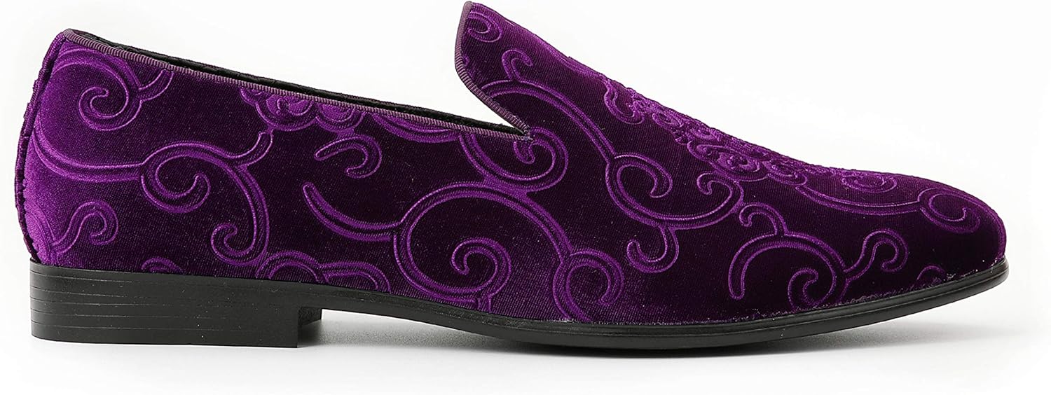 Amali King – Men’s Slippers – Mens Loafers – Designer Shoes for Men – Tuxedo Shoes – Velvet Loafers Men – Embossed Paisley Pattern, Satin Band and Trim