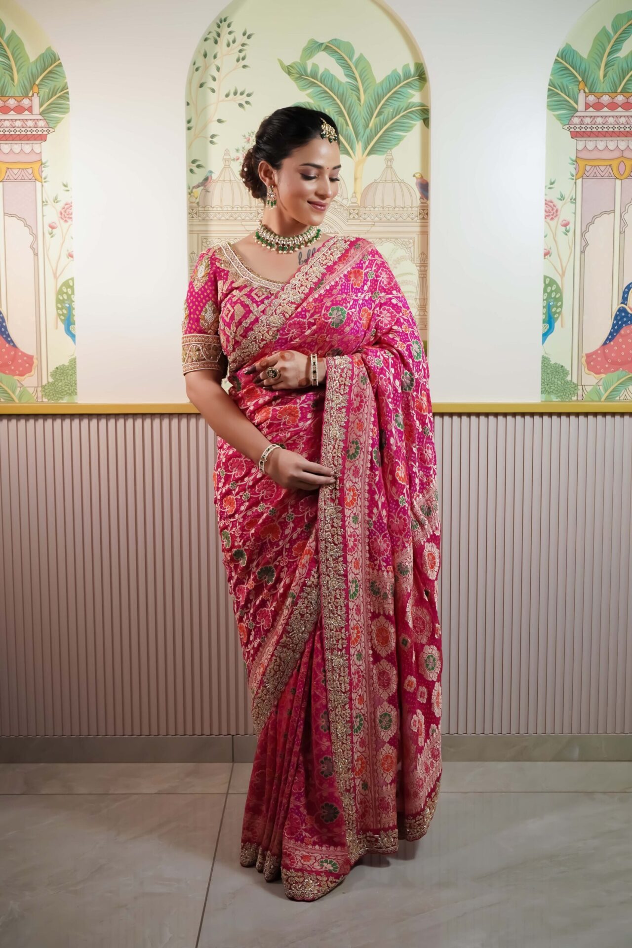Hot Pink Saree Bandhani Saree