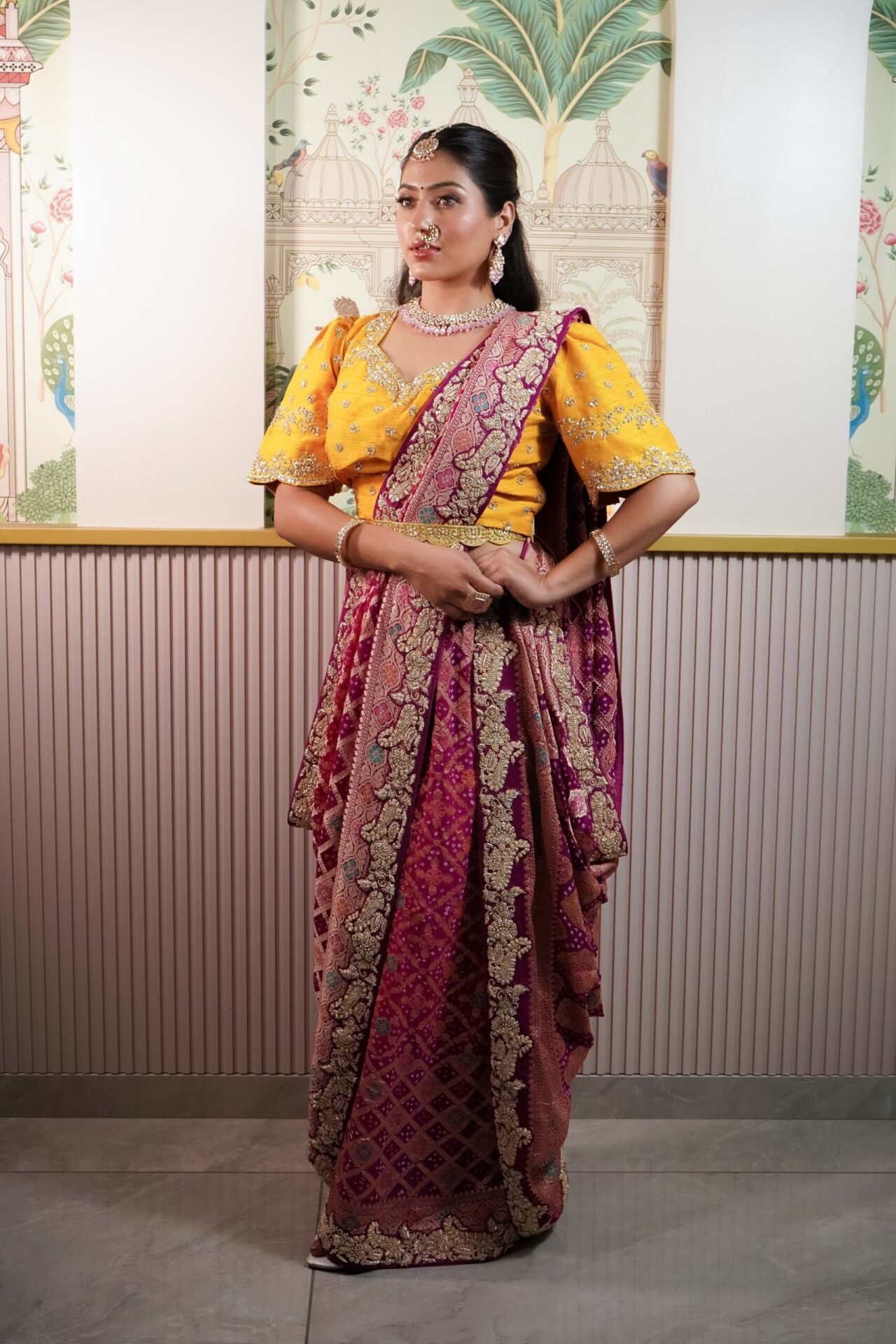 Purple Zardozi Bandhani Saree